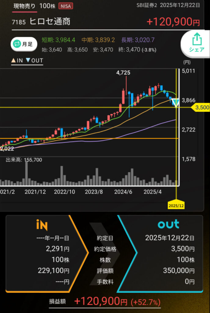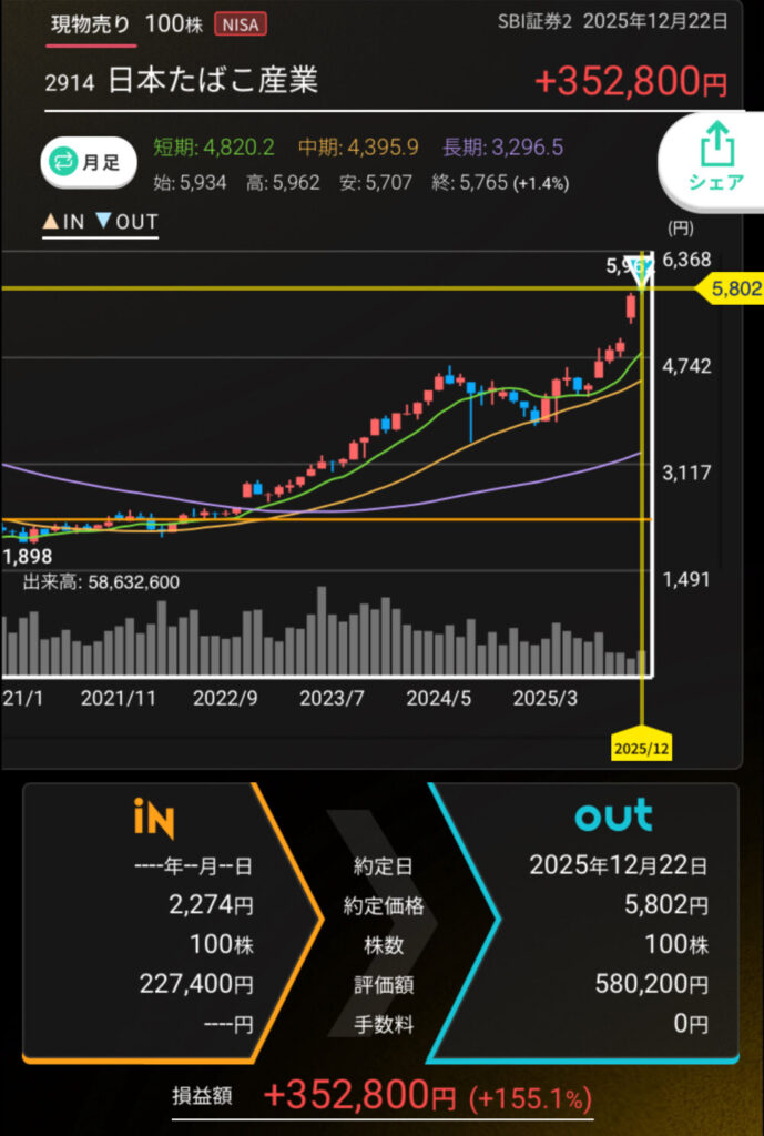 この利益のおかげで来年の新NISA成長枠分をほぼ賄えることが出来ました~。有難く。