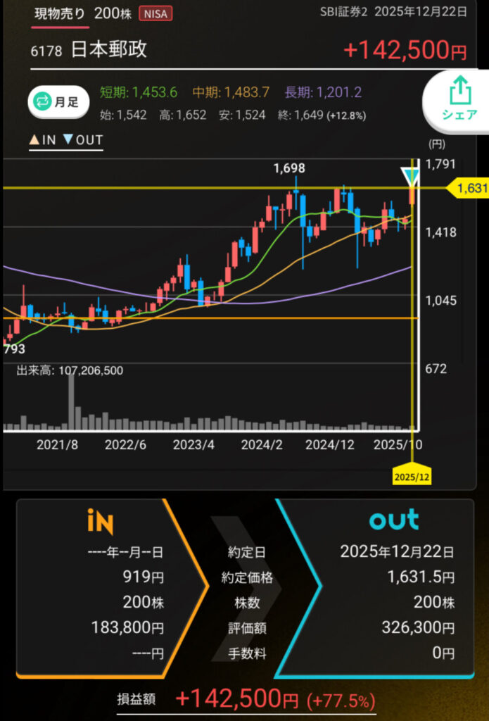 • 日本郵政(+142,500円)