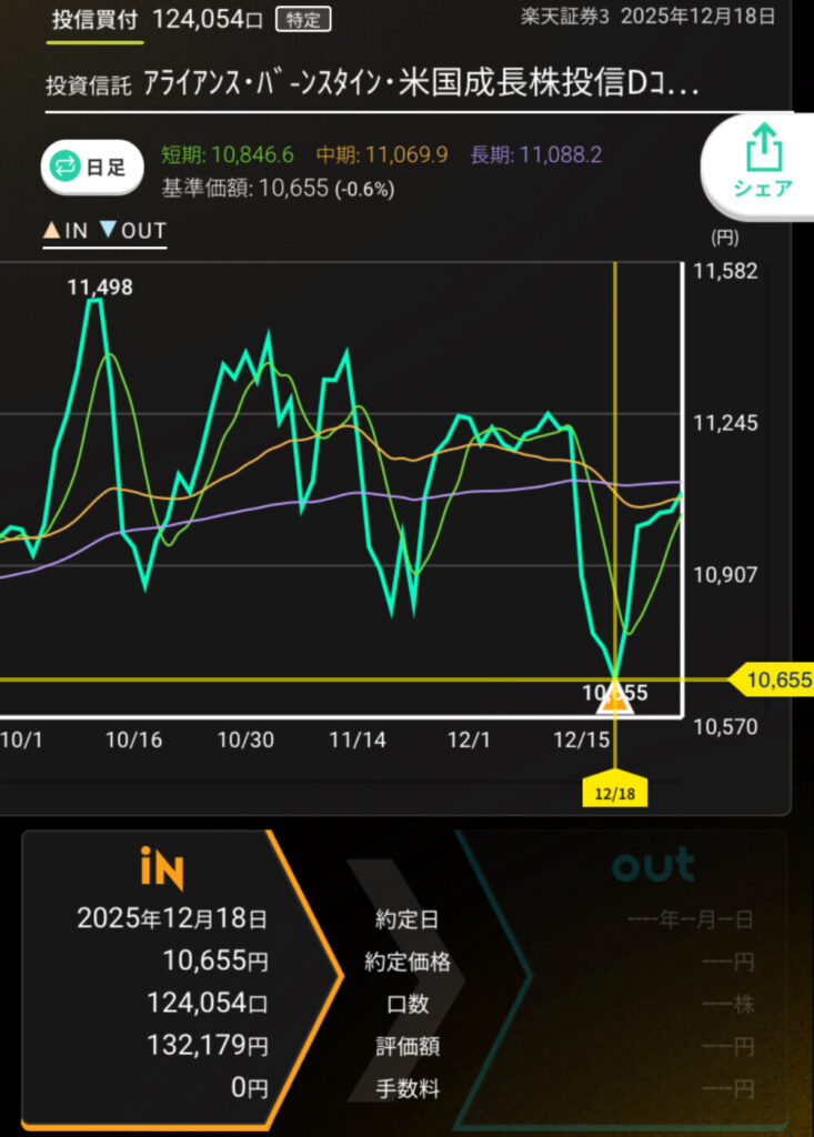 今月は未成年口座で運用しているアライアンスDを購入(平均取得単価を大幅に下回ったため)