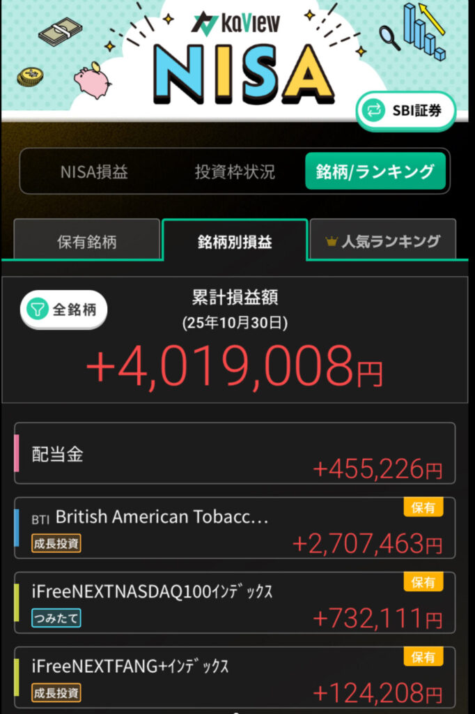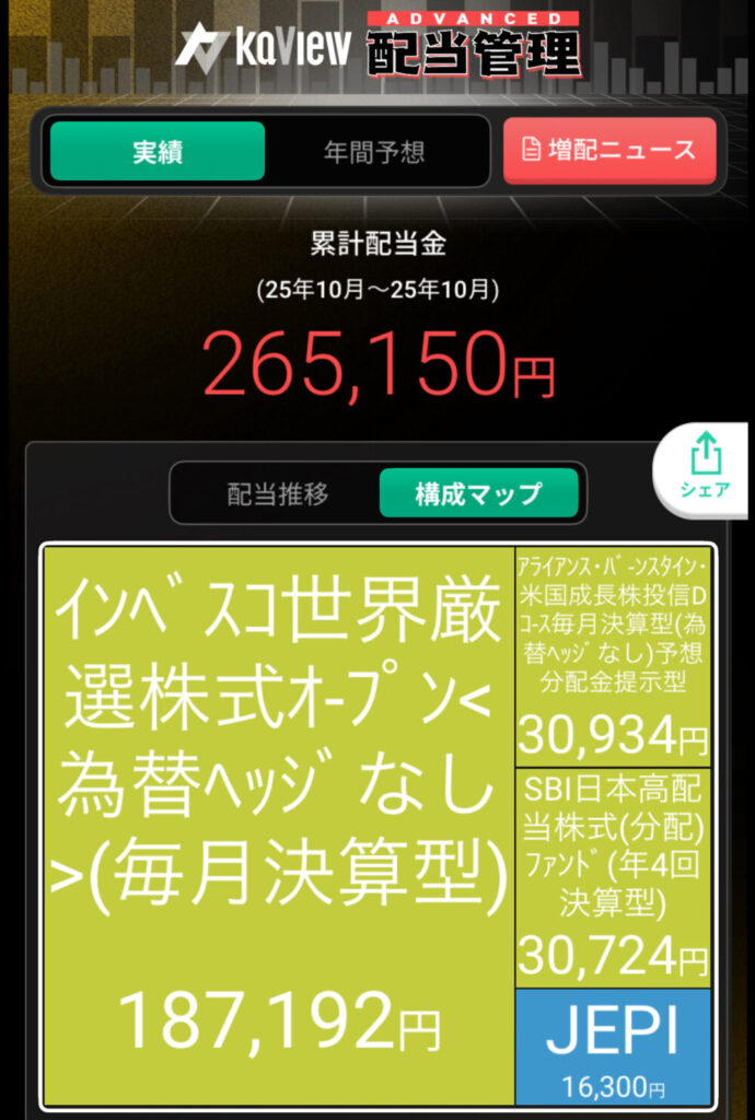 2025年10月は受取り配当金自体は少なかったけれども、JTの増配に助けられ含み益もかなり増えました。