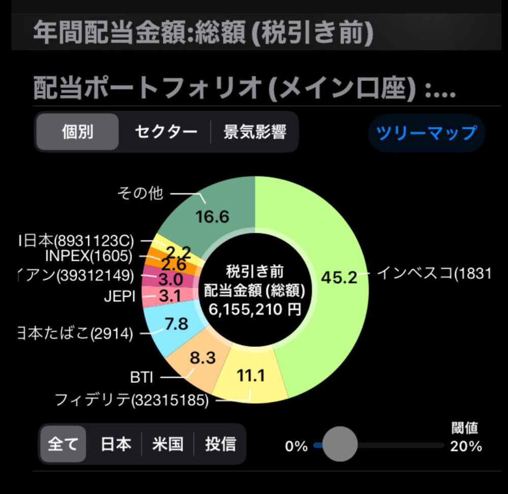 うち約15万円はインベスコの特別分配金なので実質配当金は48万円くらいでしょうか。