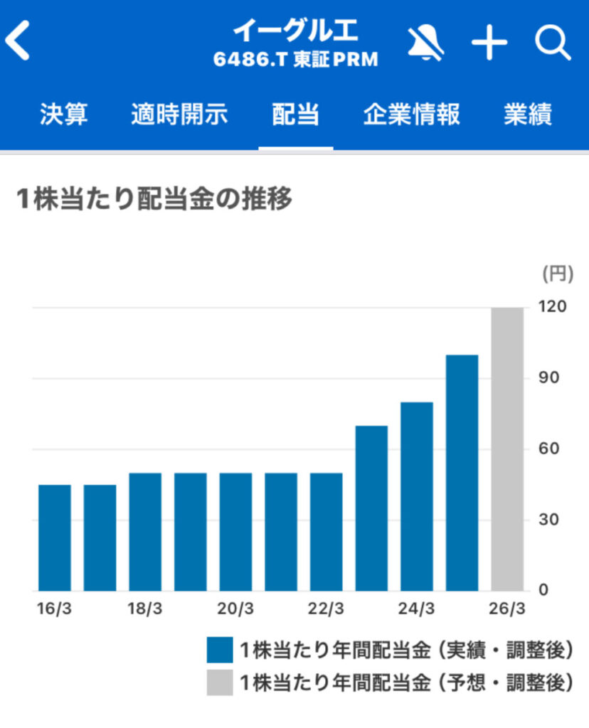 - 1株当たり配当金(会社予想)120.00円(2026/03)