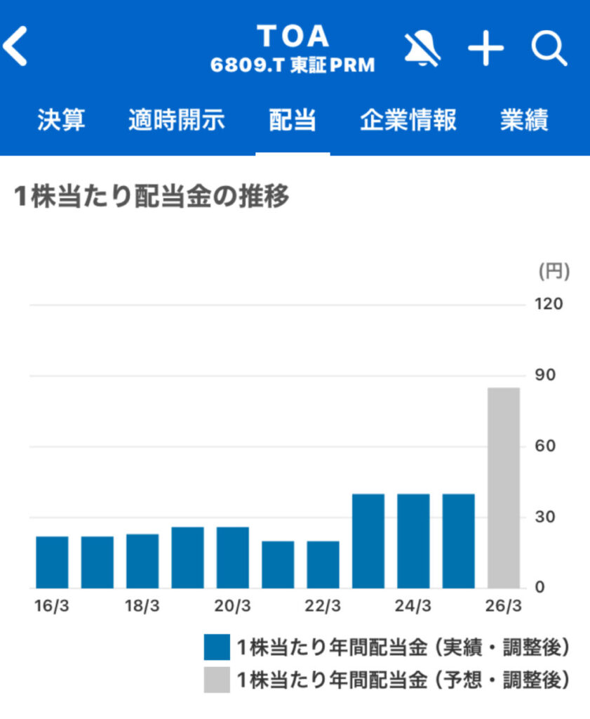 - 1株当たり配当金(会社予想)85.00円(2026/03)