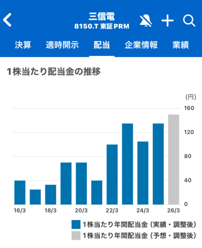 - 1株当たり配当金(会社予想)150.00円(2026/03)