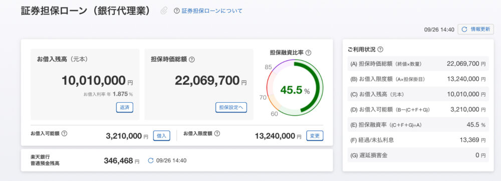 して1,001万円を楽天銀行より借入、その後、松井証券でインベスコ1,000万分購入。