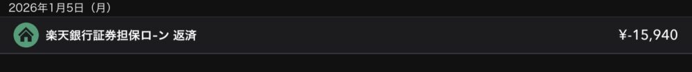2025年年末の日銀利上げに伴い、証券担保ローンの利息も上がると思っておりましたが、12月分の利息は据え置きで一安心。
