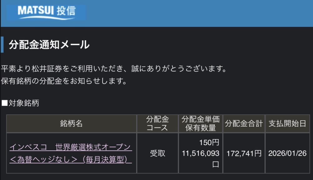 2026年1月受取り分配金