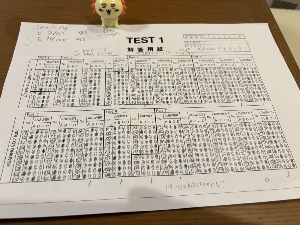 個人的には2026年1月のテストでは目標950点といたします。